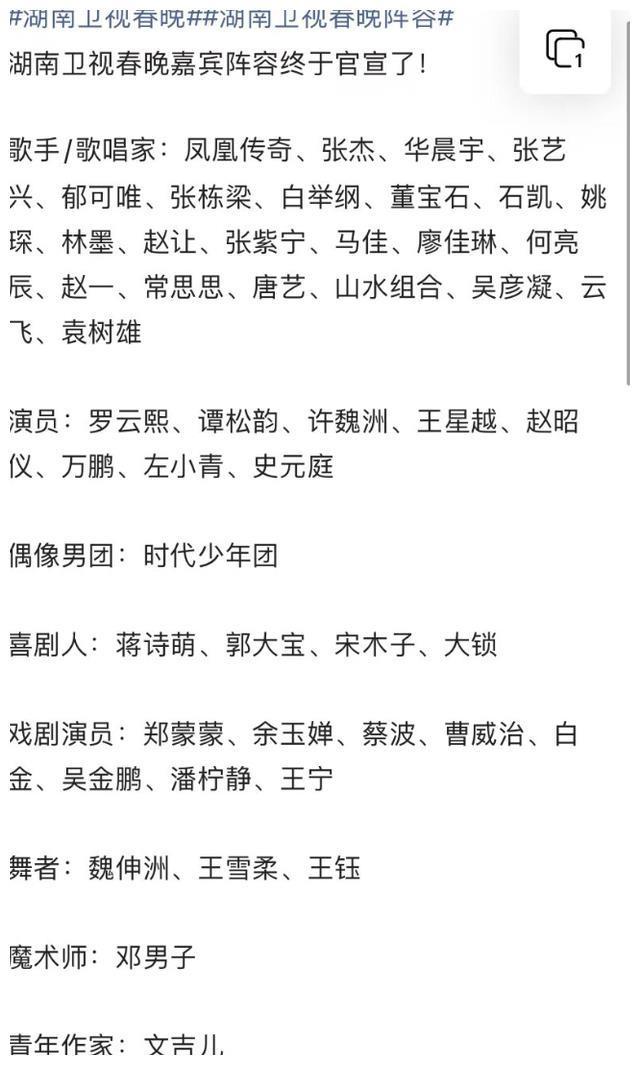 在湖南台跨大除夜压轴,这一次又行为分量级选手加盟春晚,想来亦然压轴的符合东说念主选了。 你期待他的献艺吗?
