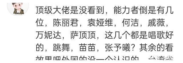不外对比台湾艺东说念主,如故失神不少,究其原因,主如若香港艺东说念主以唱粤语歌为主,受众面较窄,在内地的驰名度不足台湾的驰名歌手,王心凌和陈嘉桦连获2季冠军,等于最佳果然认。 但本季莫得1个香港艺东说念主,如故出乎预念念,像陈慧琳和郑秀文这么的唱跳天后,其实挺允洽插足这节主义。 ▲星味最黢黑,莫得准C位 固然东说念主数最多,但看了名单,国民度很高的大咖一个齐莫得。 谁有冠军相,很出丑得出来,新2体育不像往季节目,一看名单就约略能猜到谁是准C位。 可能等于因为莫得大咖,是以这季的节目就以东说念主数取胜。 不外事实一经讲解,不是大咖越多,节目就越悦目,像公认实力最强的第2季,集中了那英、周笔畅、杨丞琳、容祖儿等驰名度很高的实力唱将,却是最拉垮、最出丑的一季。 何况莫得大咖,不代表莫得才智者,就像某位网友评论的那样,唱歌好的有 陈丽君、袁娅维、何洁、戚薇、万妮达、萨顶顶等,舞蹈好的有苗苗、张予曦等。